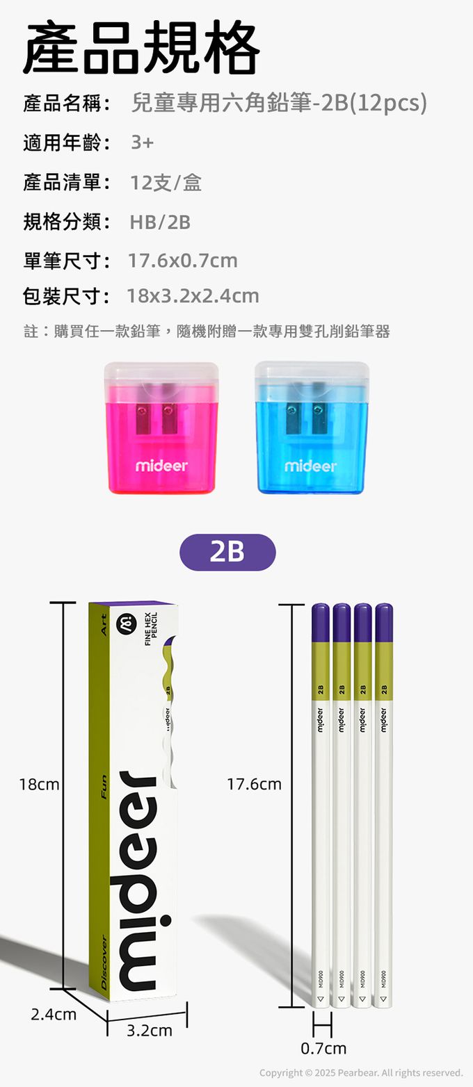 品名:兒童專用六角鉛筆-HB(12pcs) 附贈雙孔筆削