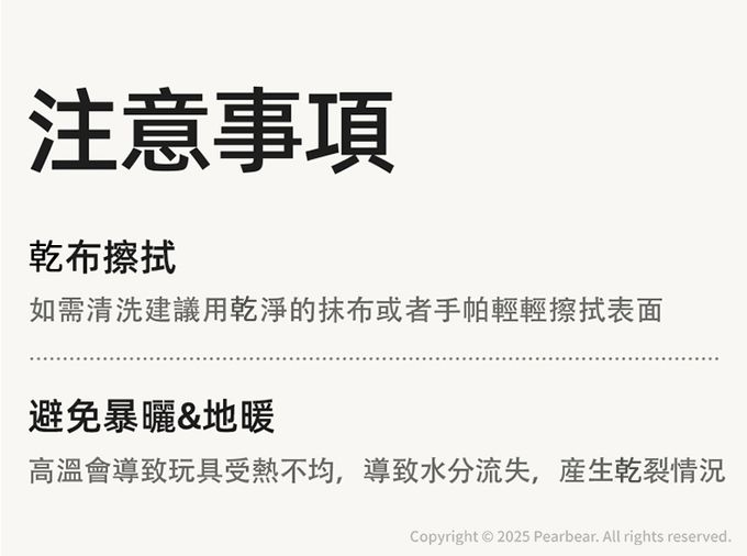 注意事項:為維護兒童安全,請在成人監督下使用,本玩具內 含小物件,有銳邊或尖端,或者兩者皆有,不適合 未滿3歲兒童使用,且應避免吞食造成窒息。為避 免嬰兒或兒童產生窒息之危險,請於拆卸後,立即 將塑膠袋遠離嬰兒及兒童。請遠離火源。