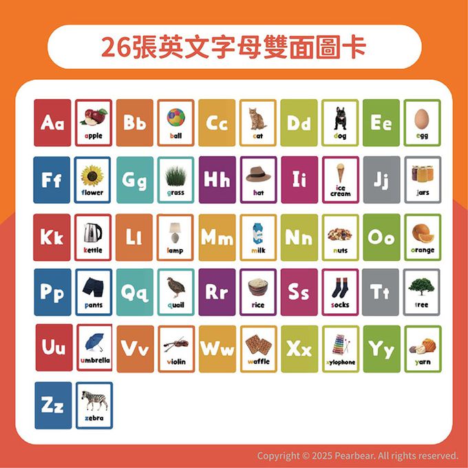 雙面設計,字母搭配單字及圖片,提升詞彙量