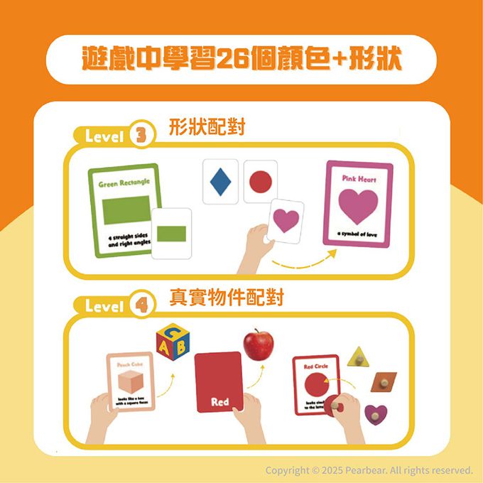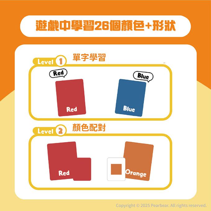 透過配對遊戲認識26種顏色與形狀英文名稱