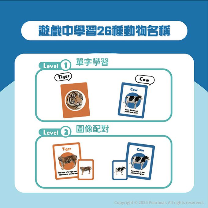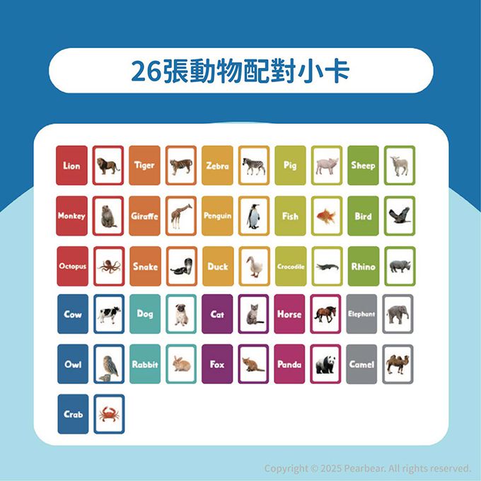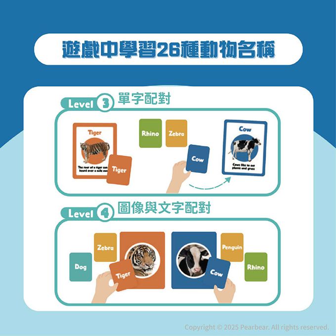 透過配對遊戲在遊玩中認識26種動物英文詞彙