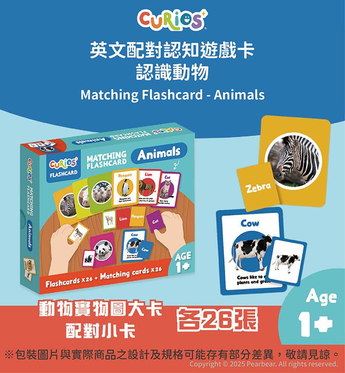 採用真實動物圖畫,符合蒙特梭利教育理念