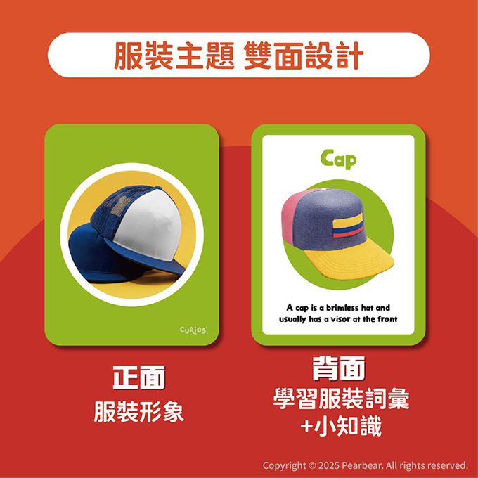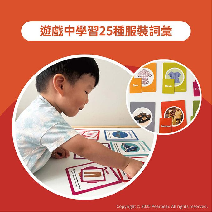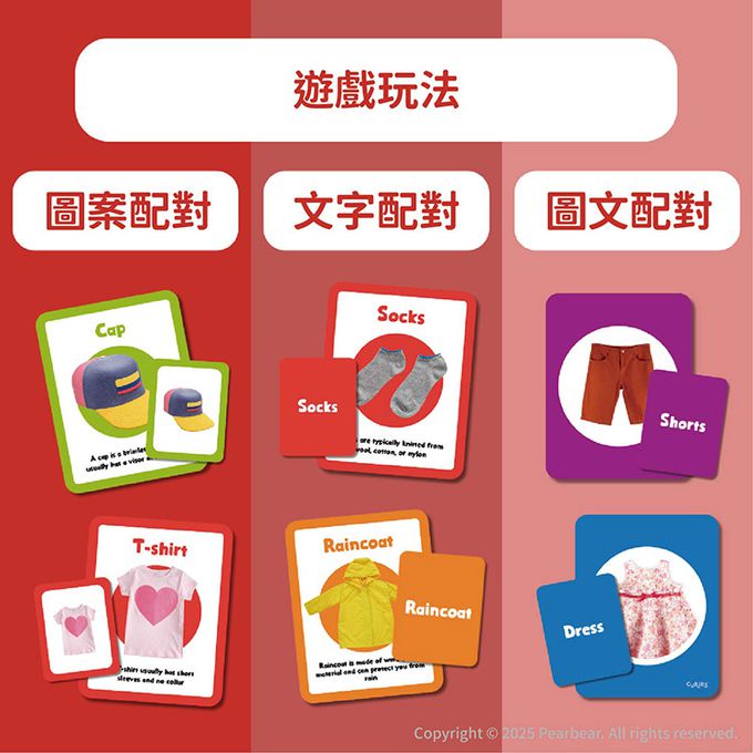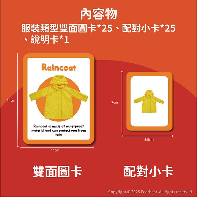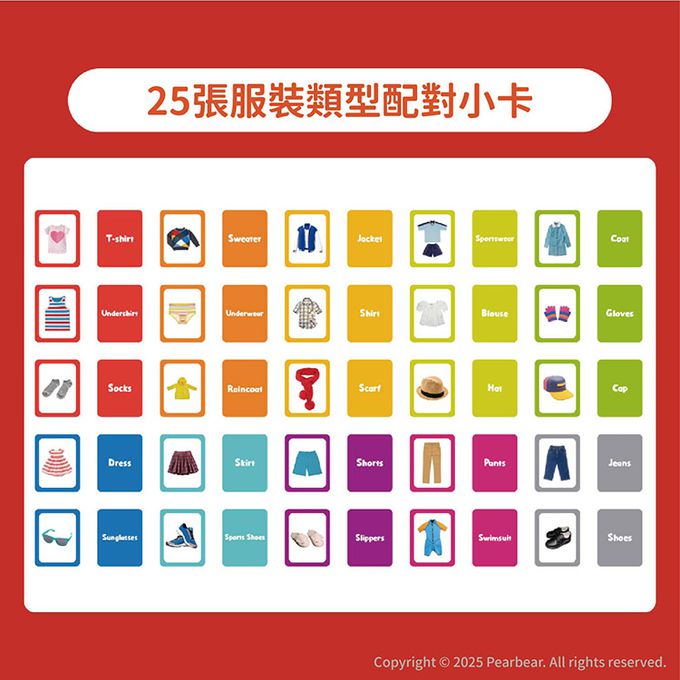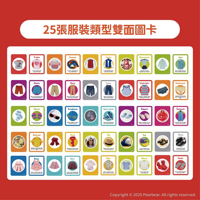 內含25張服裝名稱大字卡與25張配對小卡