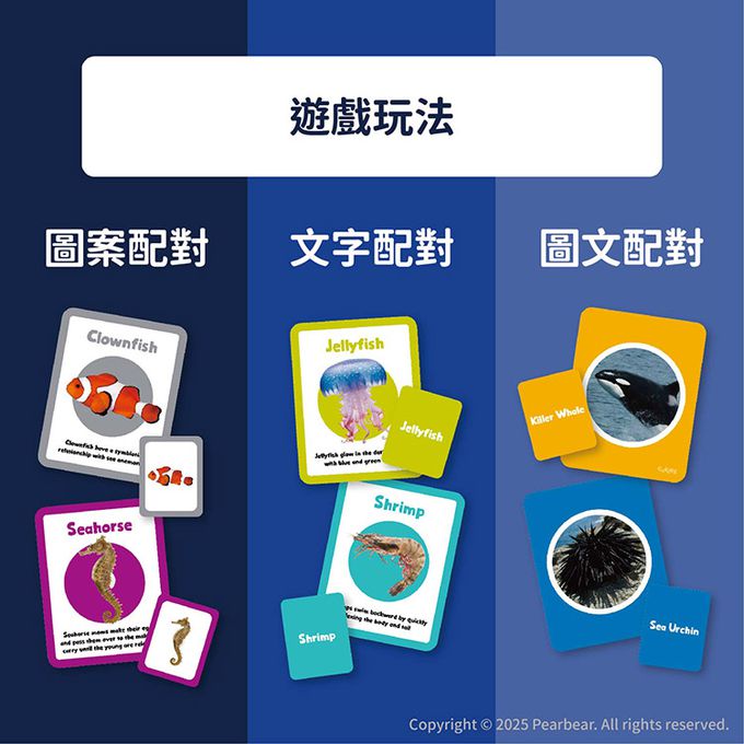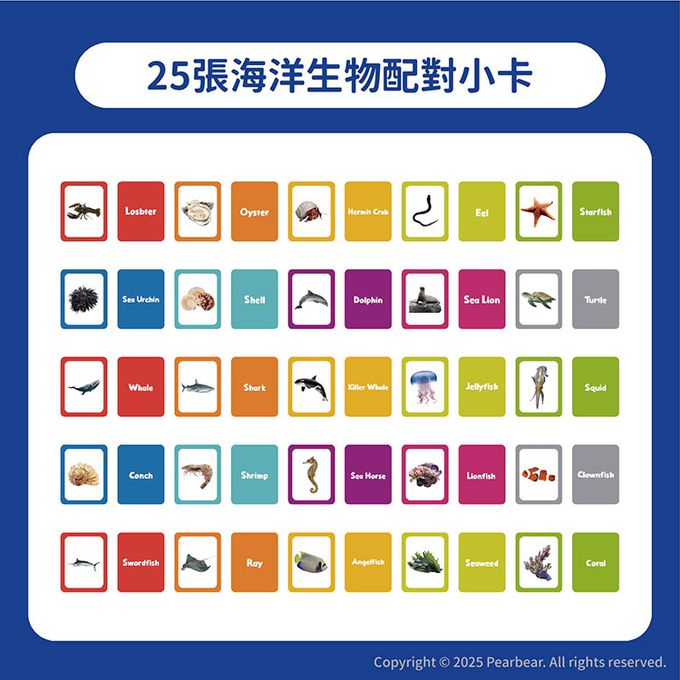 透過配對遊戲自然學習25種海洋生物英文詞彙