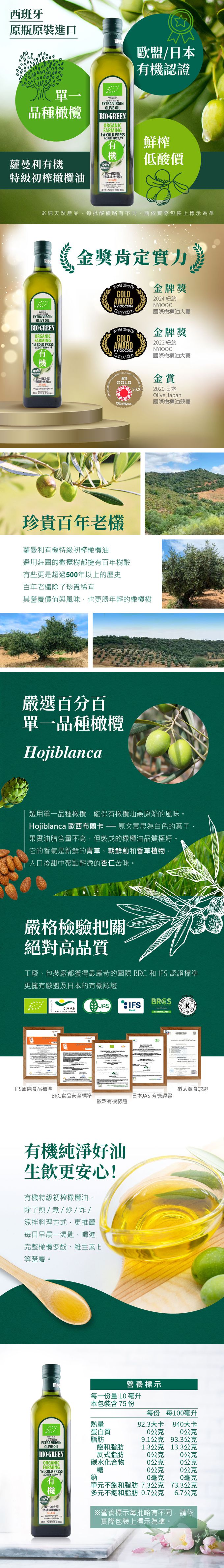 品名:蘿曼利有機特級初榨冷壓橄欖油750ml+EHD有機白葡萄酒醋250ml