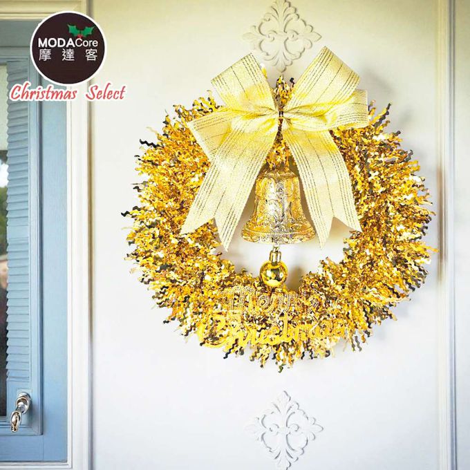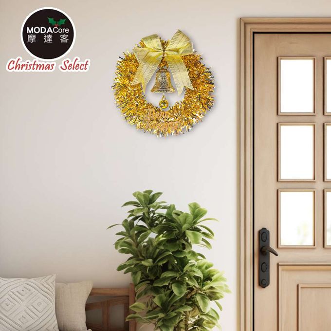 品名:11吋璀璨金運系金蔥彎絲聖誕花圈_台灣工藝免組裝_本島免運費