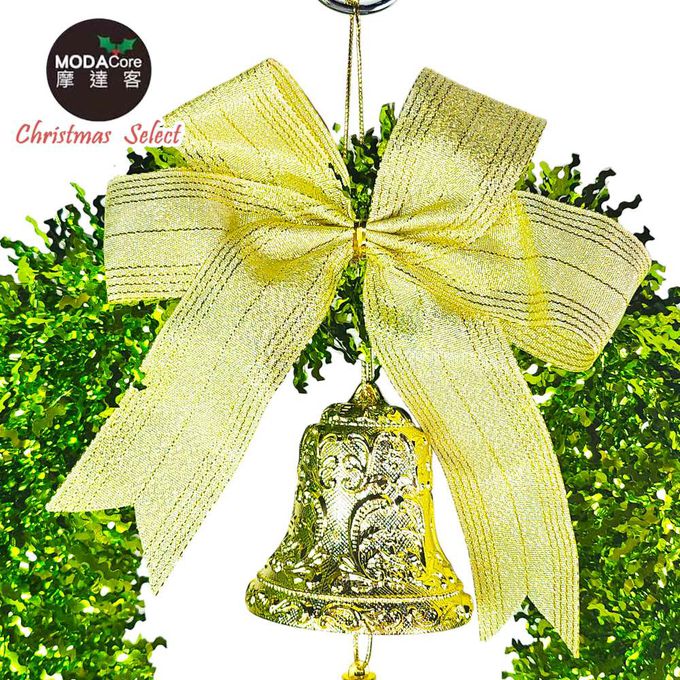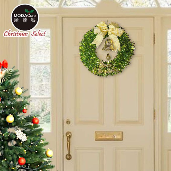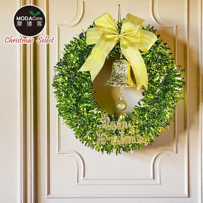 11吋時尚果綠系金蔥彎絲聖誕花圈_台灣工藝免組裝_本島免運費
