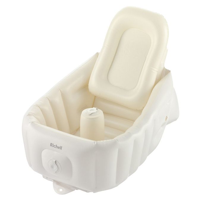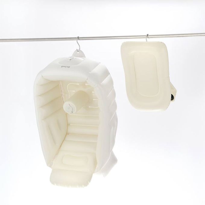 作為嬰兒沐浴椅:裝上靠墊即可作為嬰兒沐浴椅使用(7~12 個月左右)。內建氣泵,無需另備打氣筒即可輕鬆充氣。