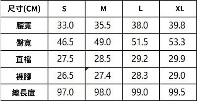 1. 尺寸表單位皆為公分(cm),實際尺寸會因布料彈性、水洗、測量起迄點等因素略有誤差。