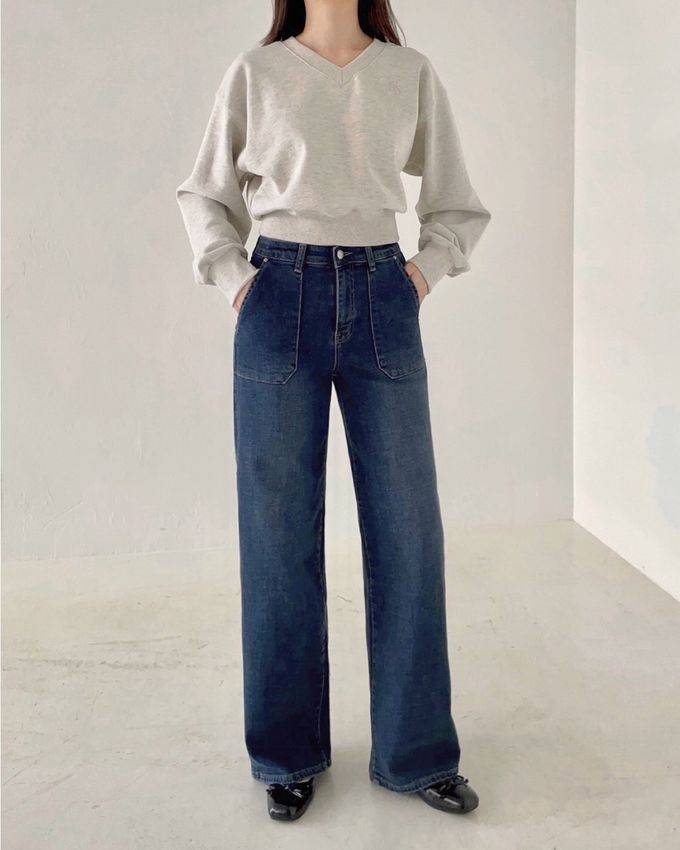 • 品名:Howluk (內磨毛)彈性腰高級環紡大口袋丹寧寬褲