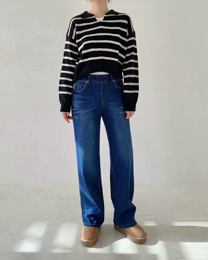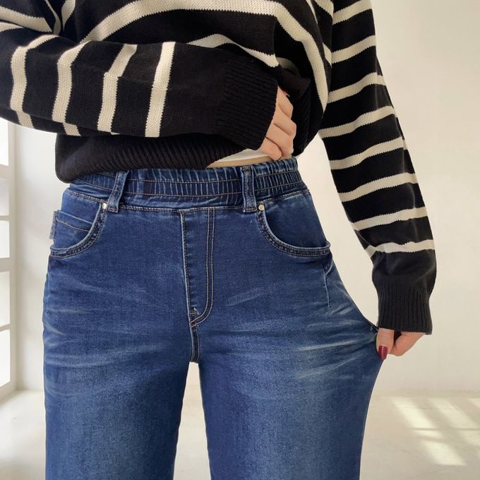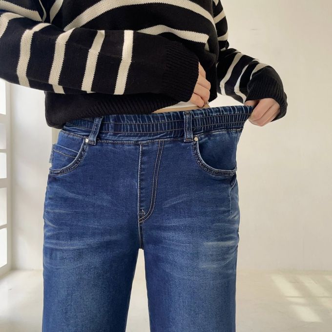 • 品名:Howluk (內磨毛)鬆緊腰舒適絲柔修身丹寧褲