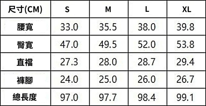 1. 尺寸表單位皆為公分(cm),實際尺寸會因布料彈性、水洗、測量起迄點等因素略有誤差。