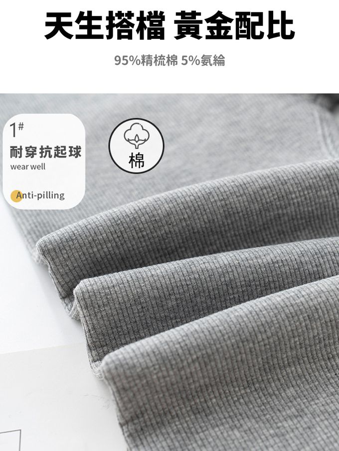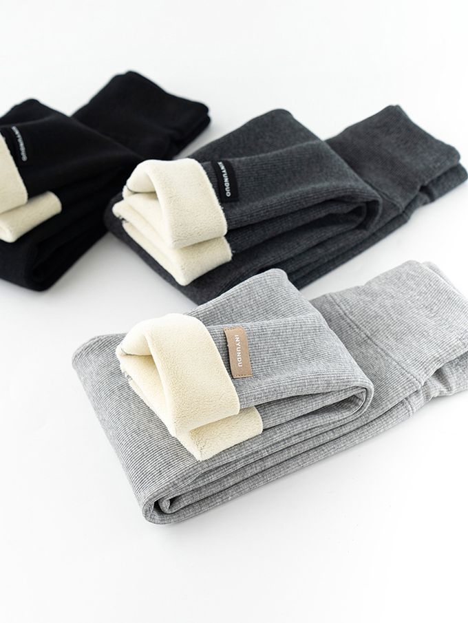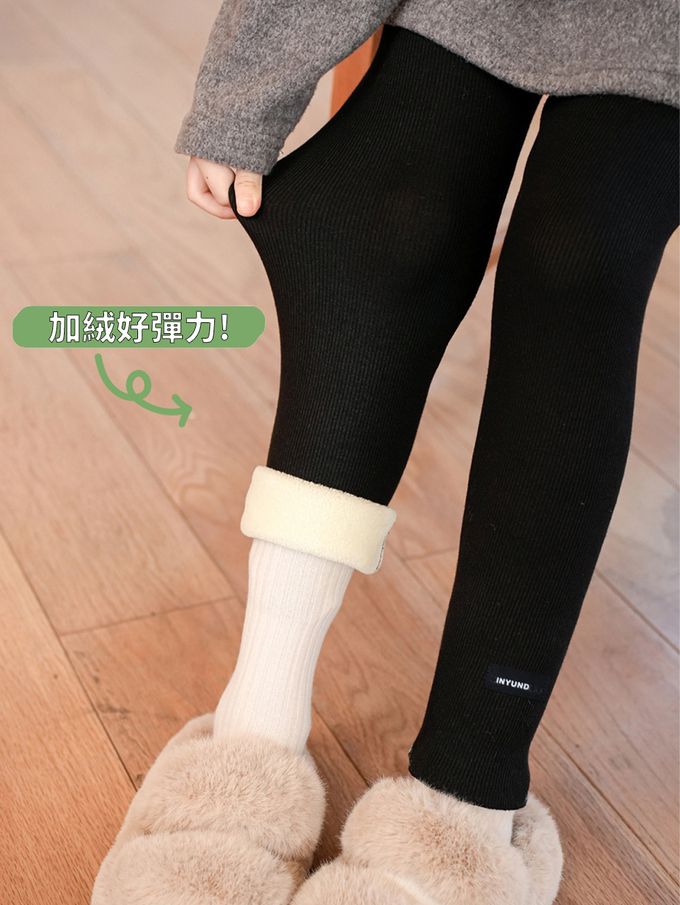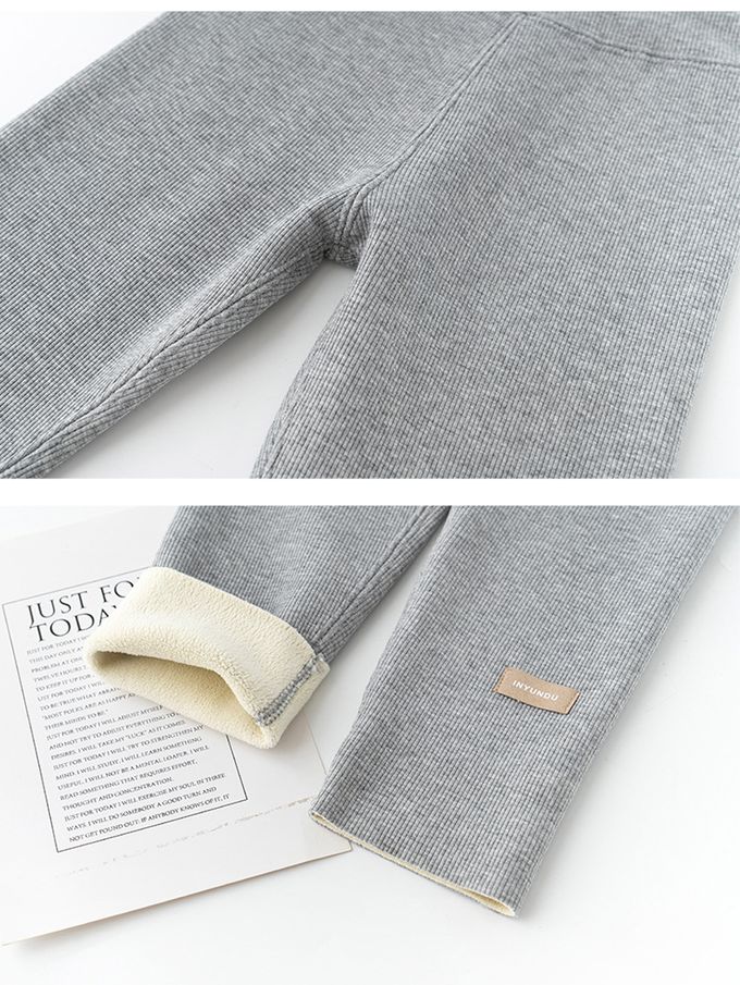 加絨腰鬆緊保暖內搭褲-簡約羅紋-淺灰