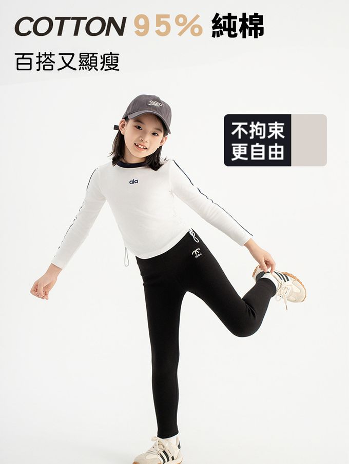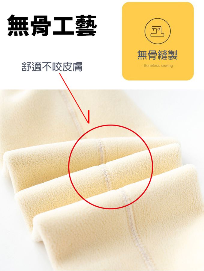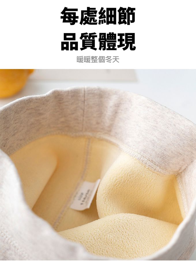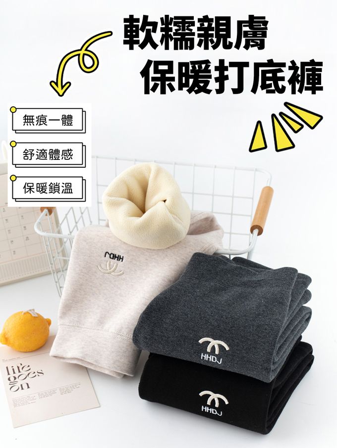 加絨腰鬆緊保暖內搭褲-簡約刺繡-燕麥色