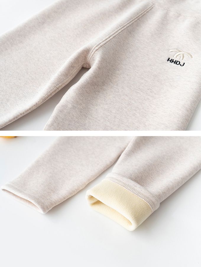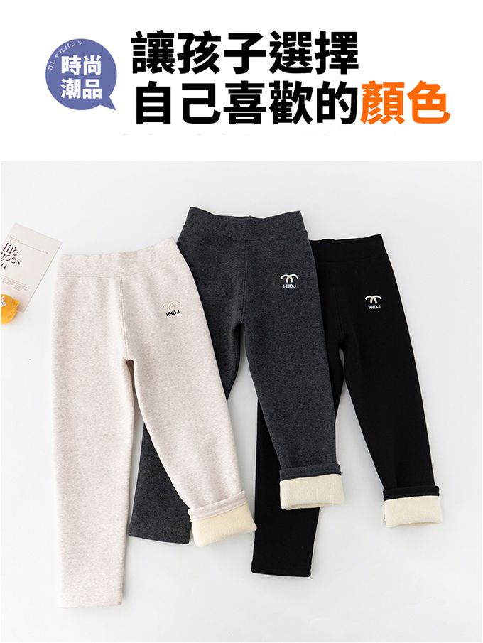 FANMOU - 加絨腰鬆緊保暖內搭褲-可愛熊熊-深灰色