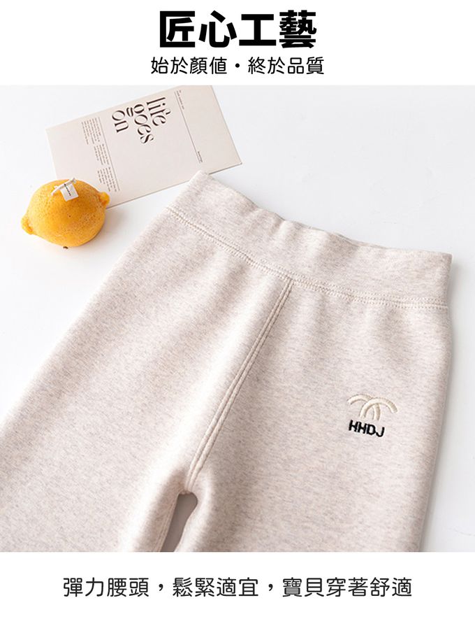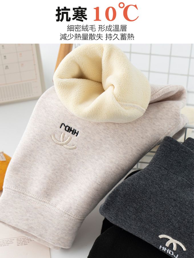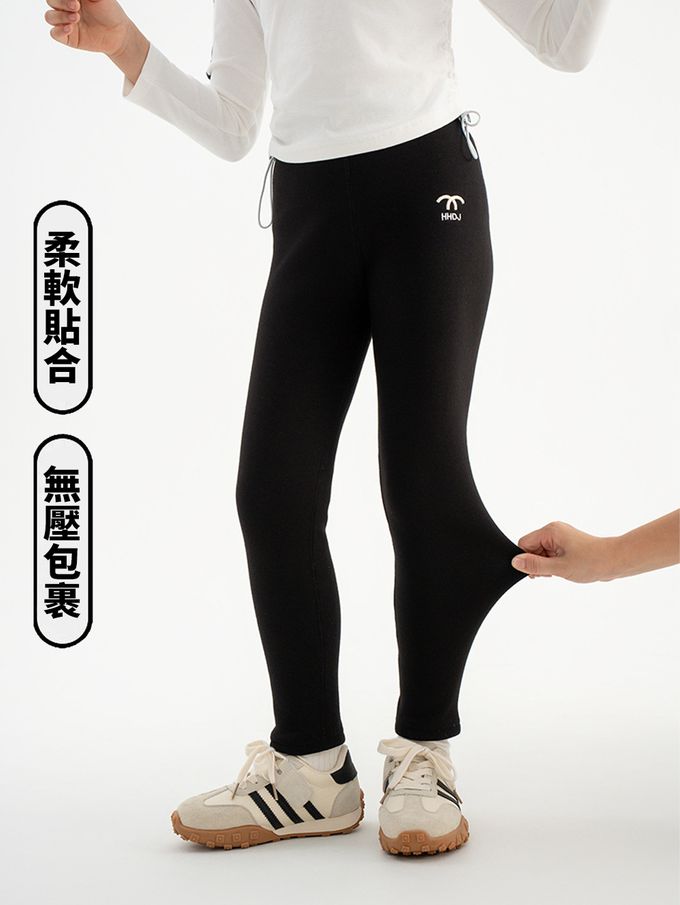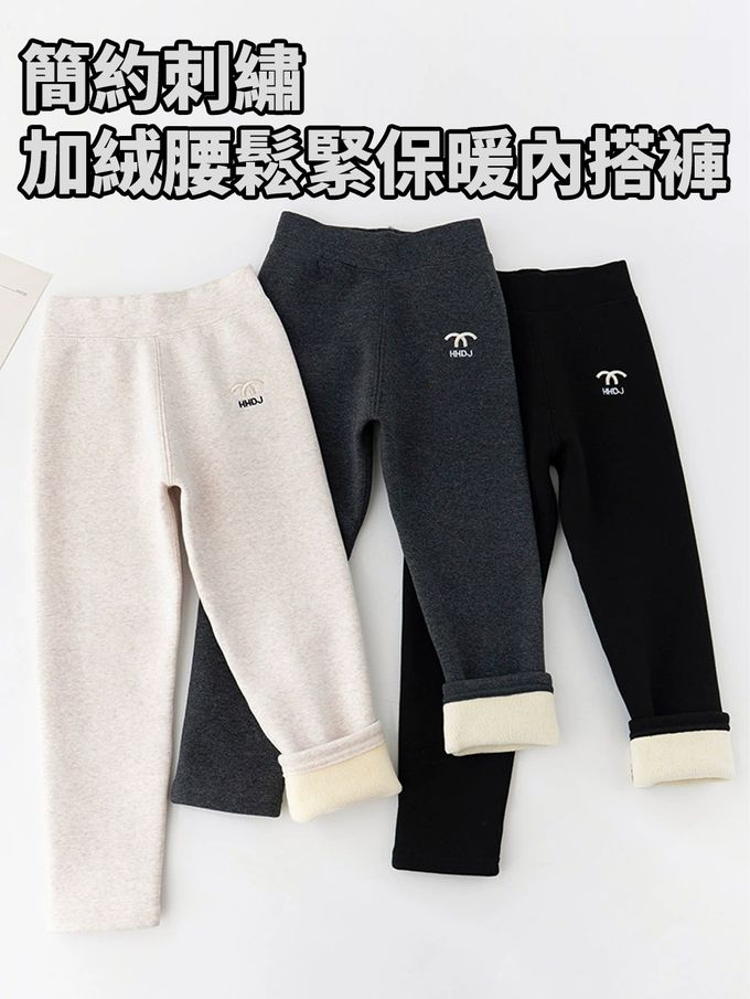 加絨腰鬆緊保暖內搭褲-簡約刺繡-黑色