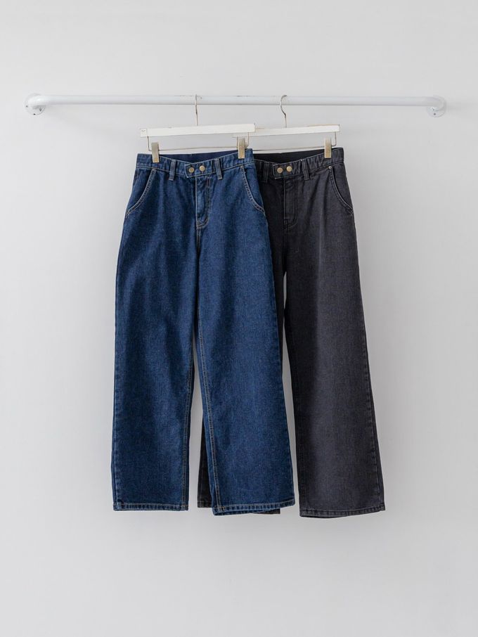 • 直筒褲型修飾腿型,雙扣細節增添經典質感