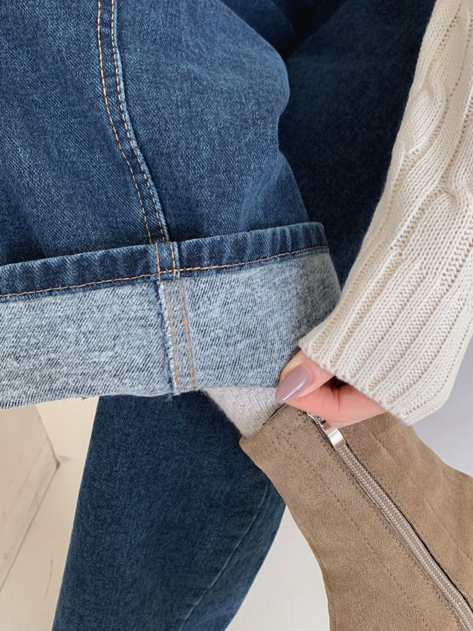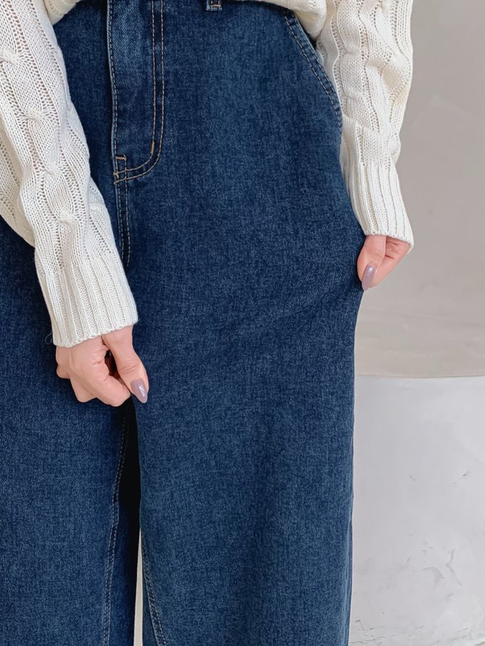 韓國女裝連線 - EDITION (內磨毛)彈性腰極簡好搭錐形褲-深藍