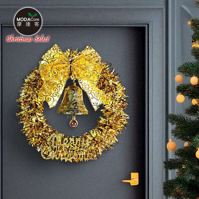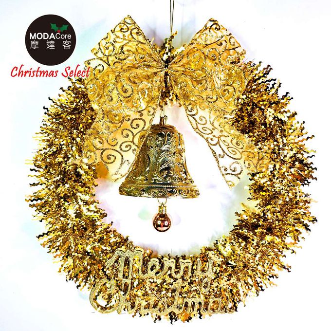 品名:14吋璀璨金運系金蔥彎絲聖誕花圈_台灣工藝免組裝_本島免運費