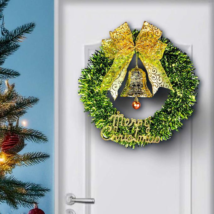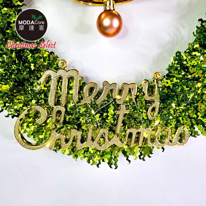 品名:14吋時尚果綠系金蔥彎絲聖誕花圈_台灣工藝免組裝_本島免運費