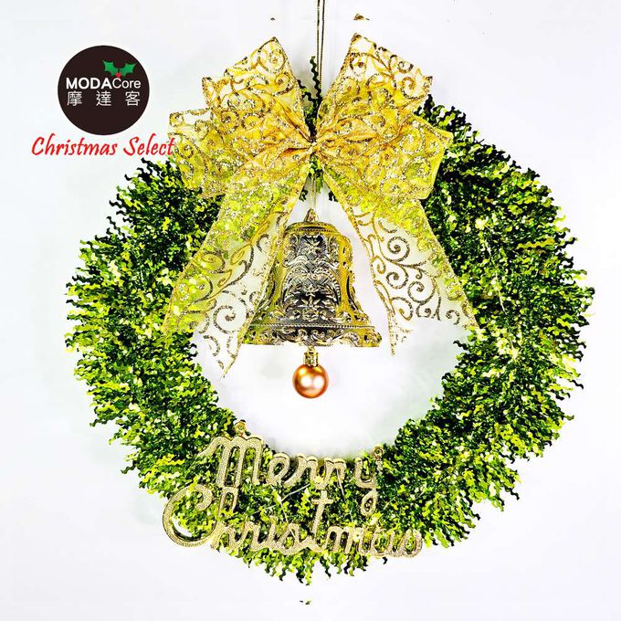 14吋時尚果綠系金蔥彎絲聖誕花圈_台灣工藝免組裝_本島免運費