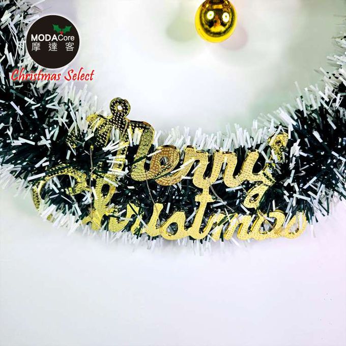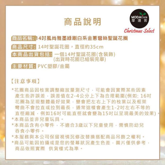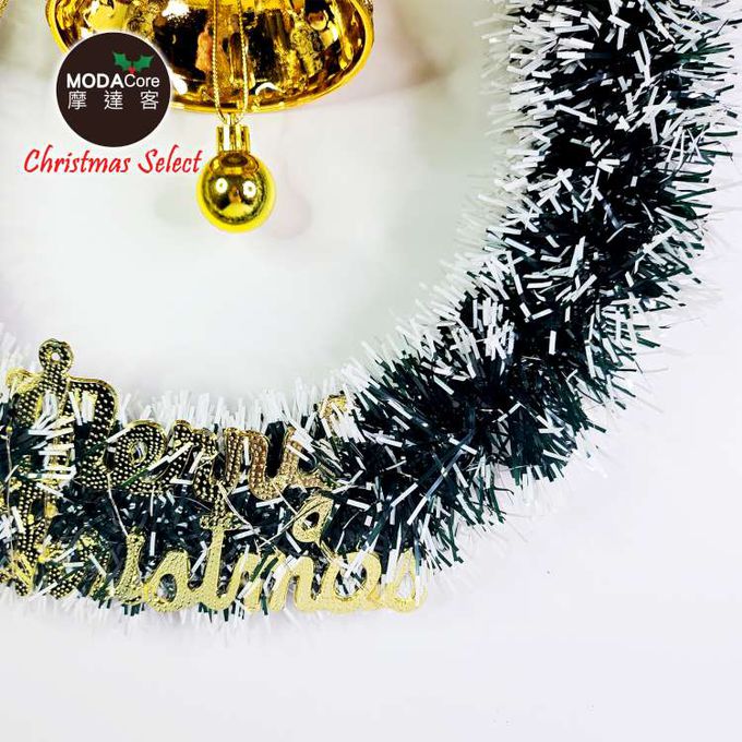 品名:14吋風尚雅墨綠刷白系金蔥彎絲聖誕花圈_台灣工藝免組裝_本島免運費