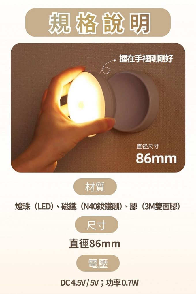 360度AI智能感應燈-越暗的地方你越亮-暖黃光-TYPE-C充電 (F)