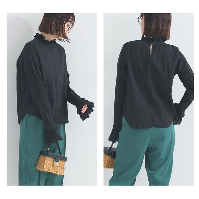 • 品名:荷葉領輕盈皺摺長袖上衣(疊穿推薦)