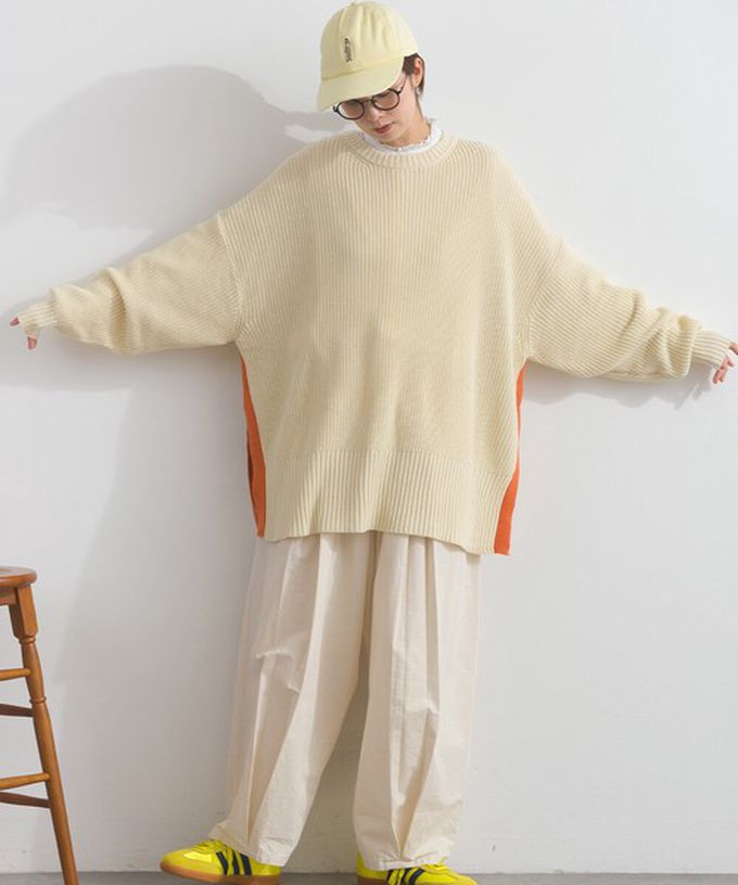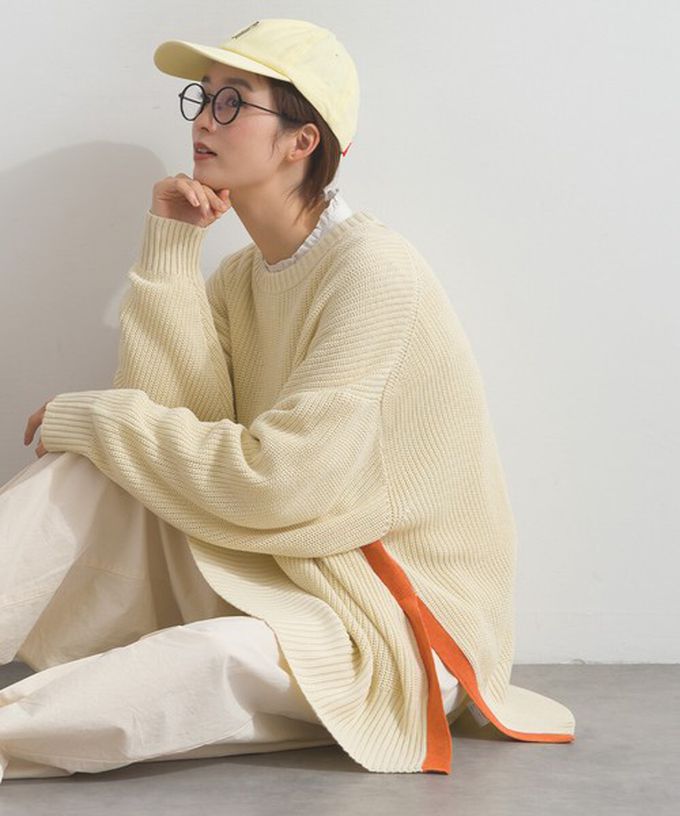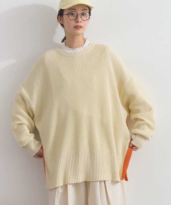 日本 Lupilien - 低調側邊撞色柔軟粗針織上衣-象牙米