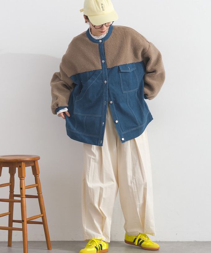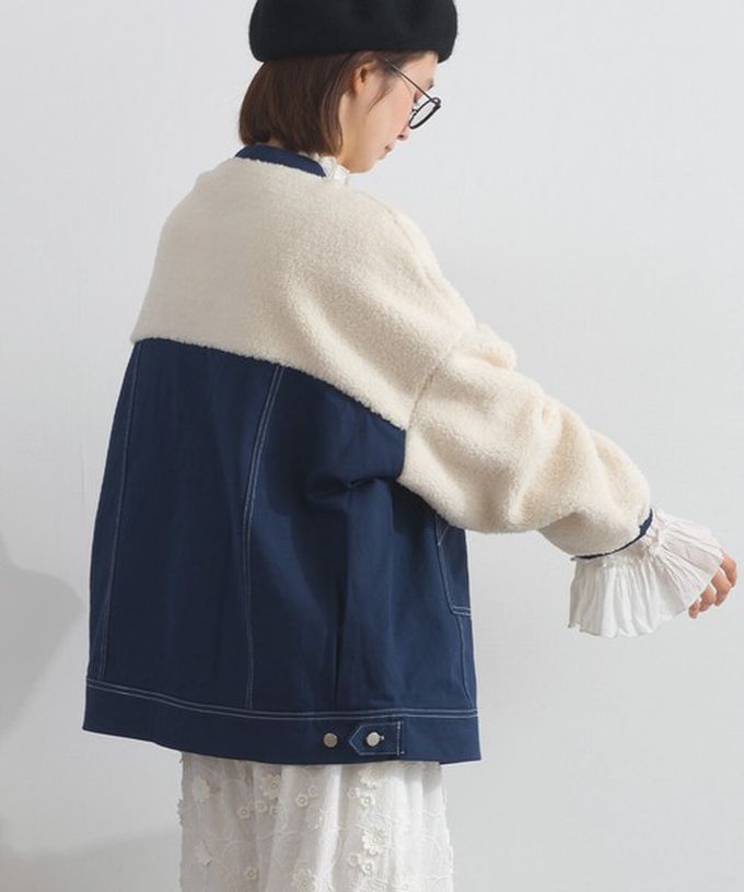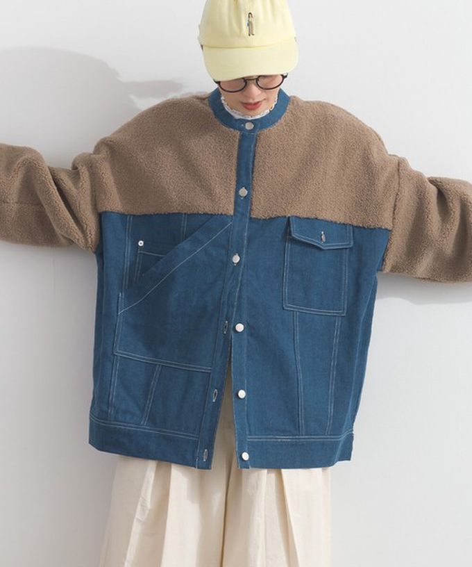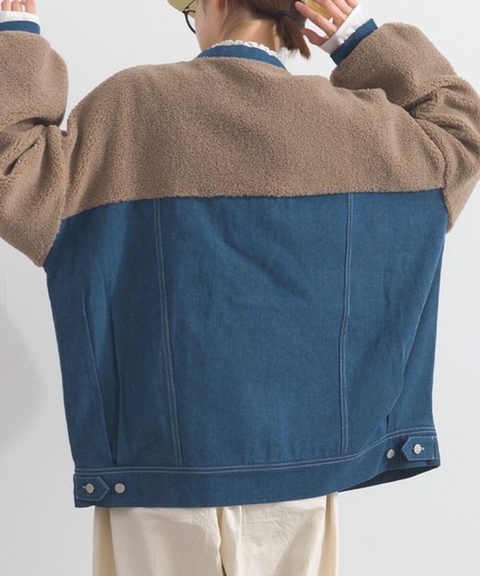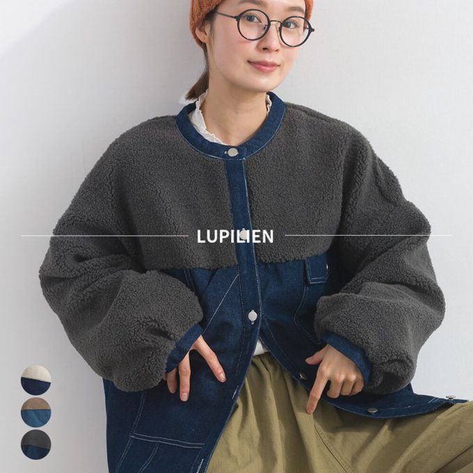日本 Lupilien - 自然風休閒丹寧毛圈拼接外套-摩卡