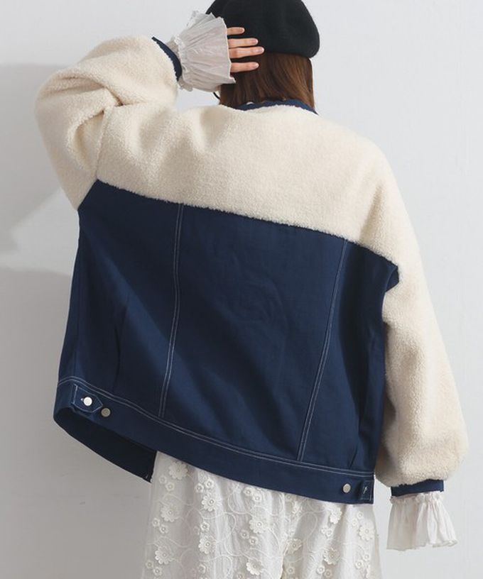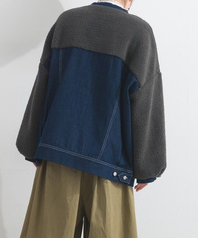 • 品名:自然風休閒丹寧毛圈拼接外套