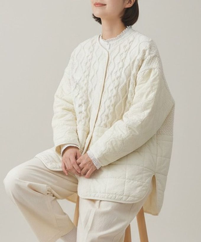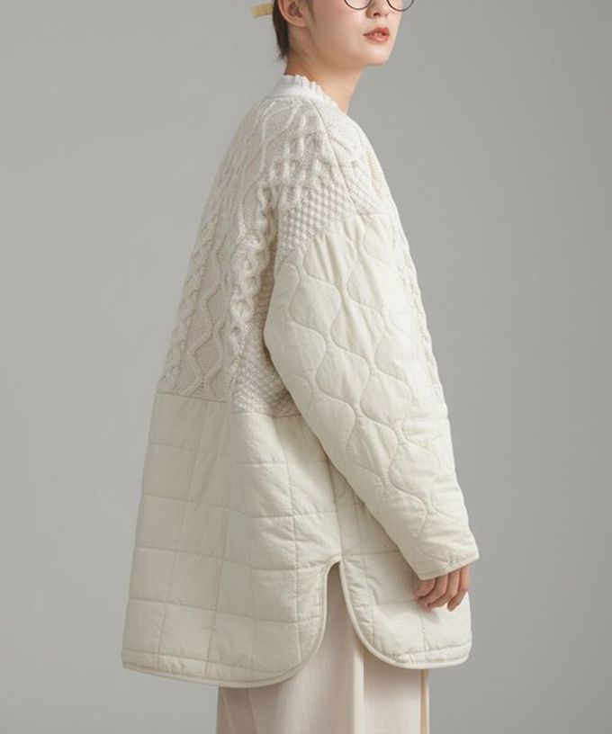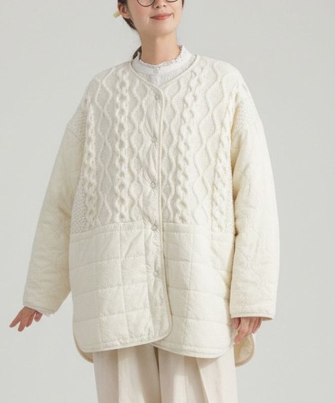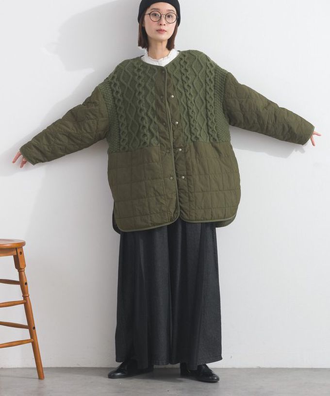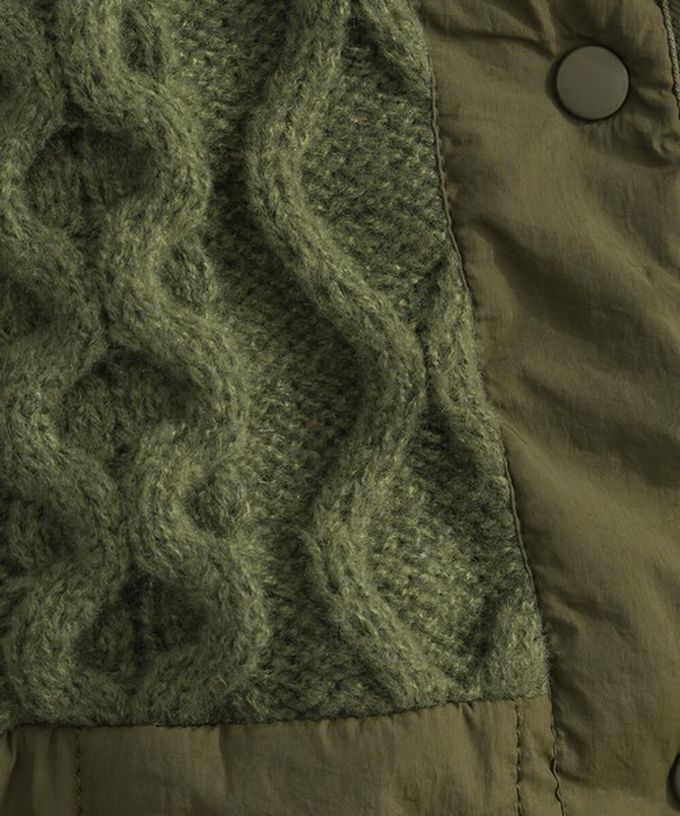 日本 Lupilien - 小清新麻花針織絎縫無領外套-橄欖綠