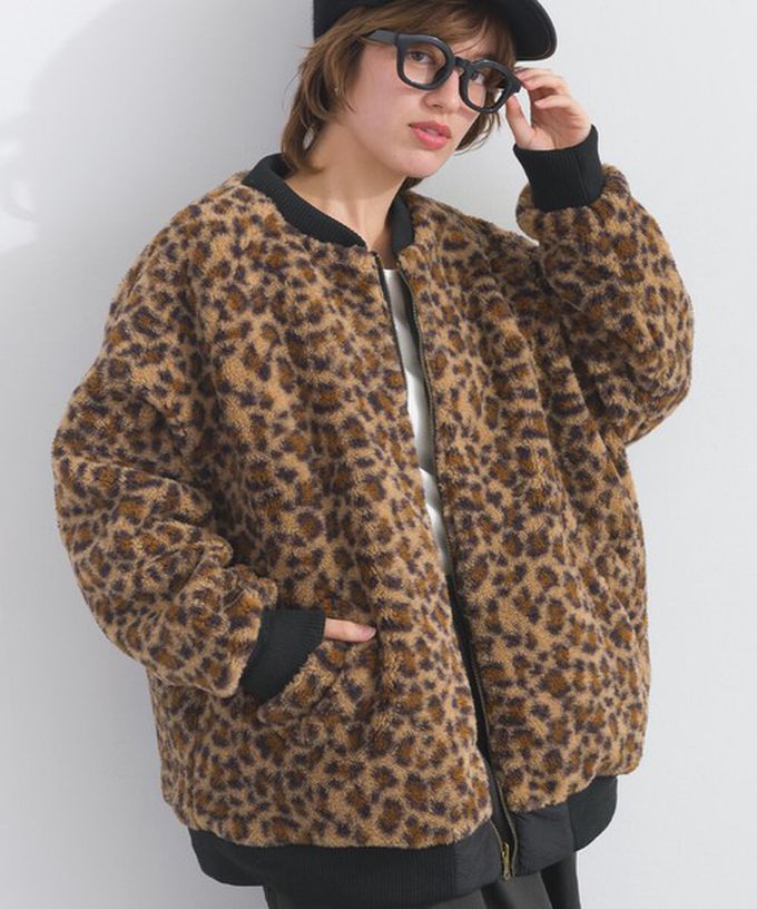 日本 Lupilien - [人氣款]鮮明印象毛絨雙面保暖夾克外套-豹紋-象牙