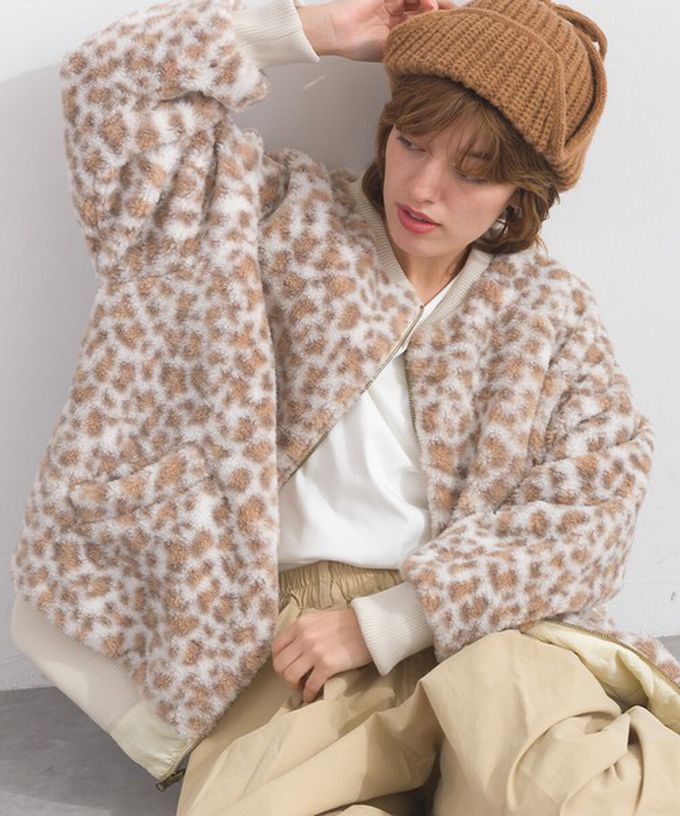 日本 Lupilien - [人氣款]鮮明印象毛絨雙面保暖夾克外套-豹紋-黑棕