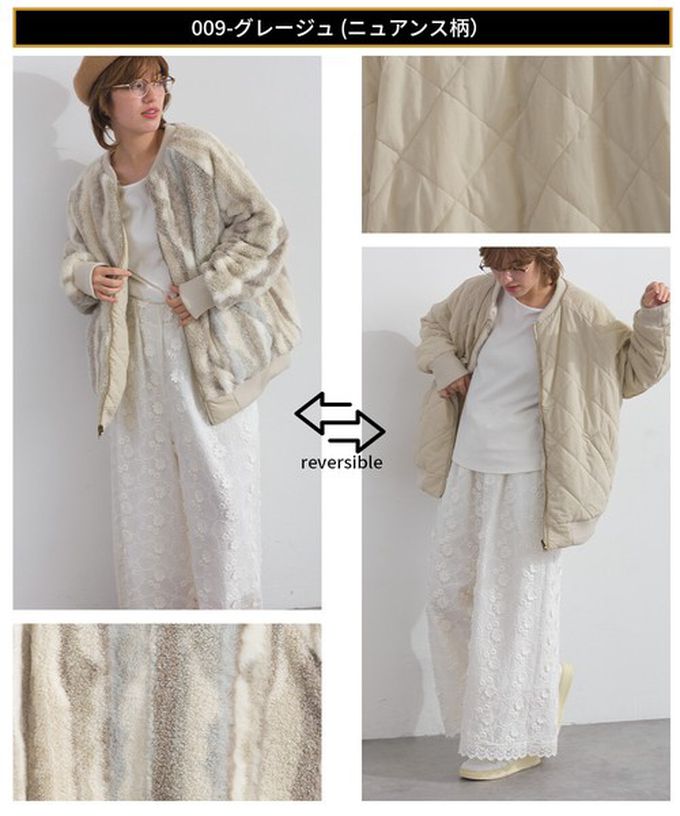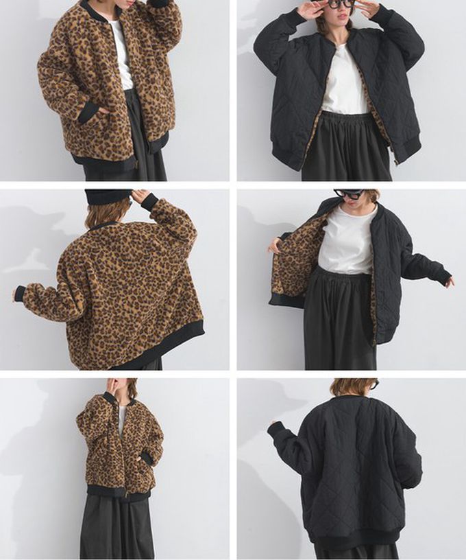 日本 Lupilien - [人氣款]鮮明印象毛絨雙面保暖夾克外套-花朵-黑