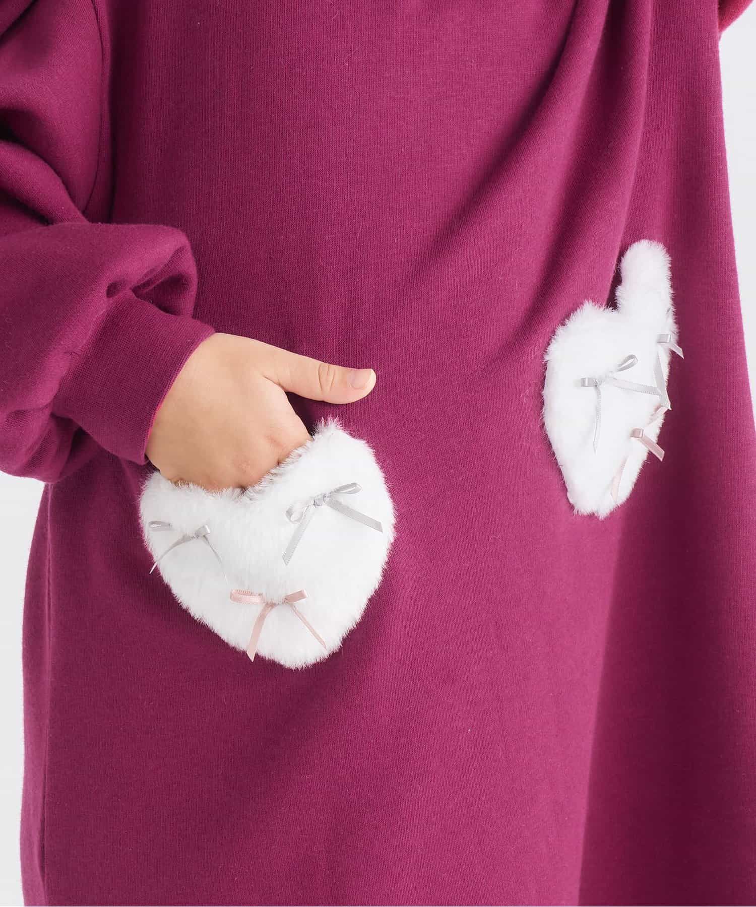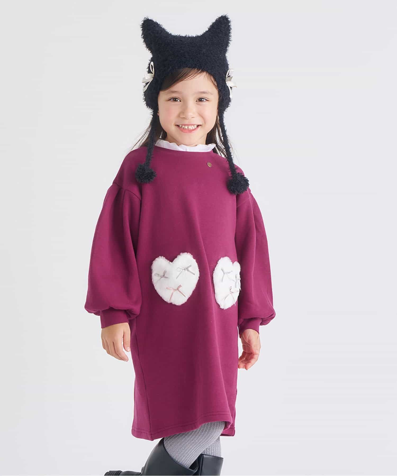 日本 apres les cours - 溫暖內刷毛心型口袋荷葉領長袖洋裝-黑