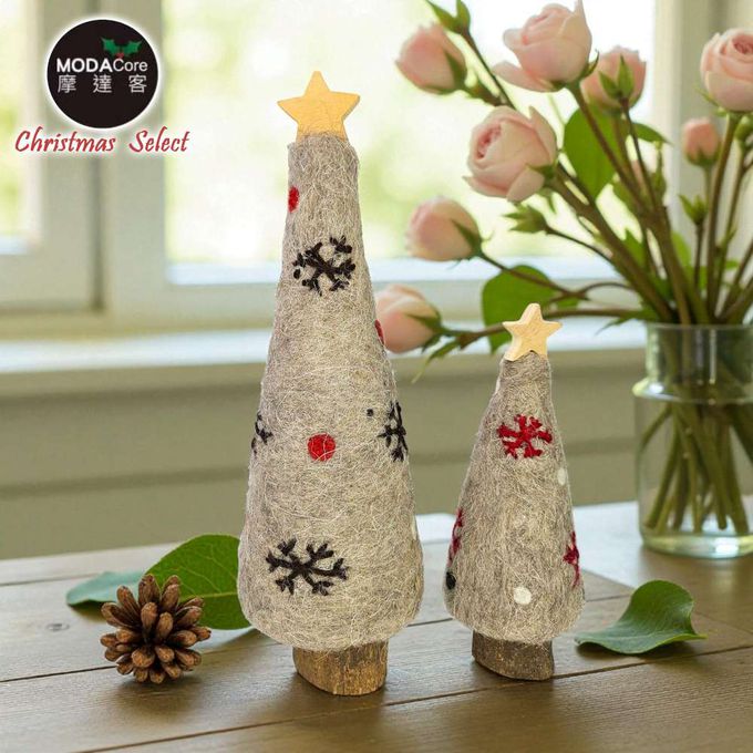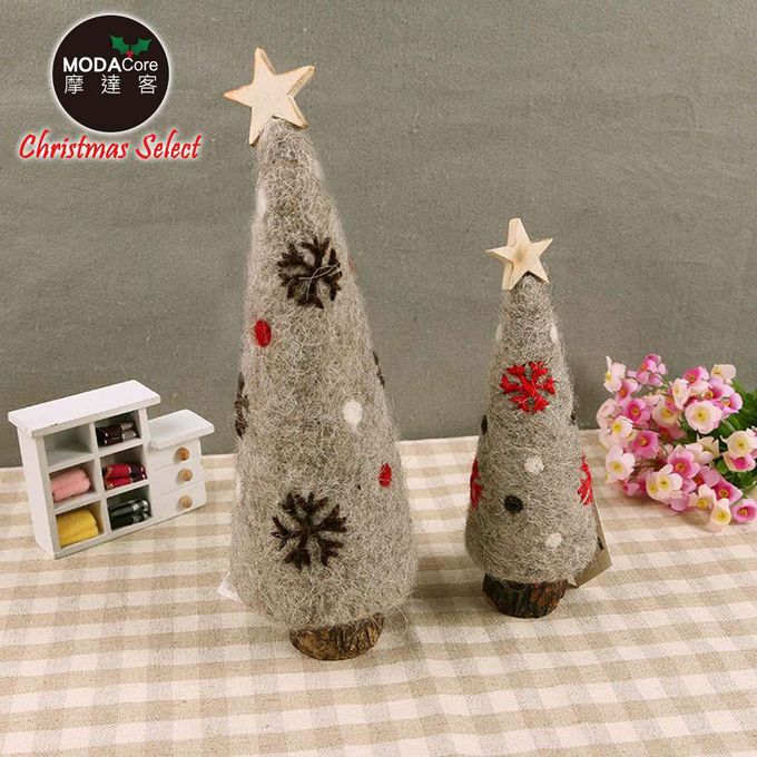 羊毛氈雪花溫暖灰聖誕樹擺飾品20cm+30cm兩入組-交換禮物耶誕派對推薦