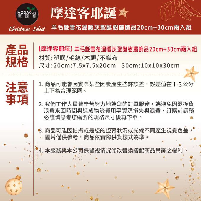品名:羊毛氈雪花溫暖灰聖誕樹擺飾品20cm+30cm兩入組-交換禮物耶誕派對推薦