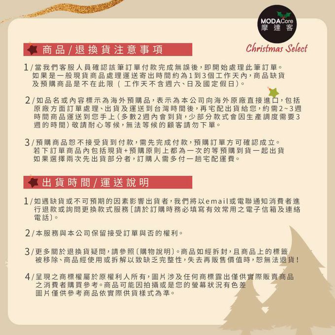 預購商品:預購為海外同步代購,遇缺貨即會通知媽咪並協助取消退款事宜。