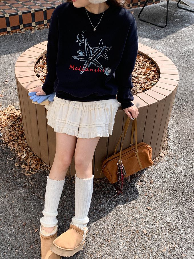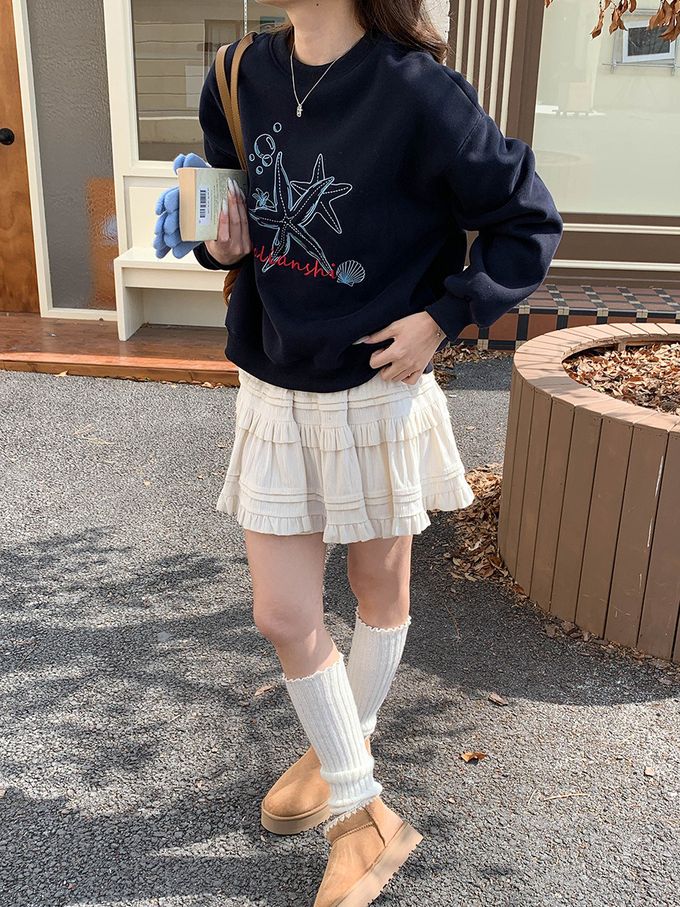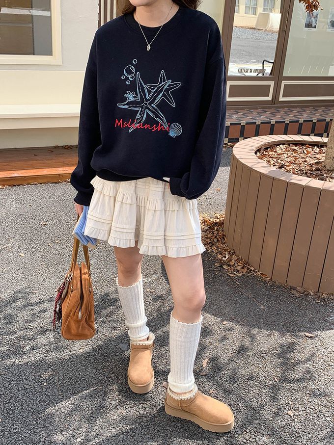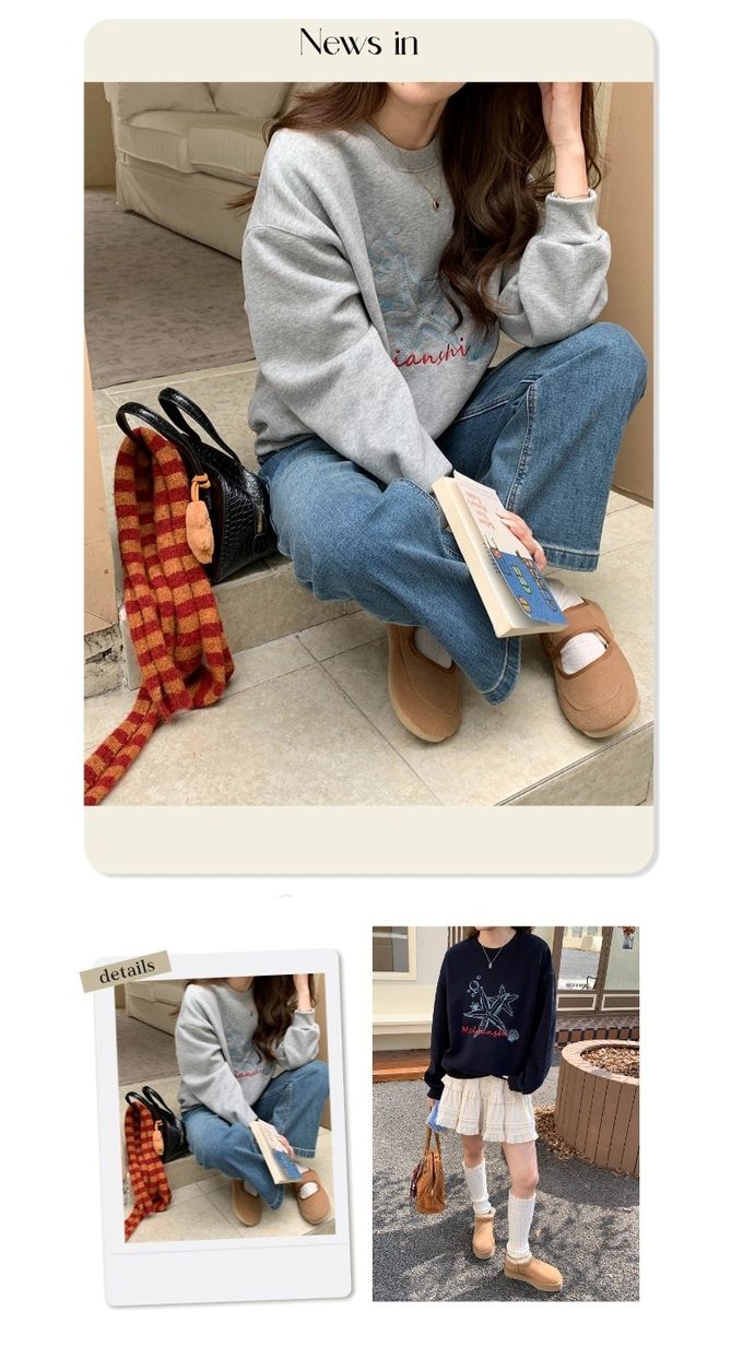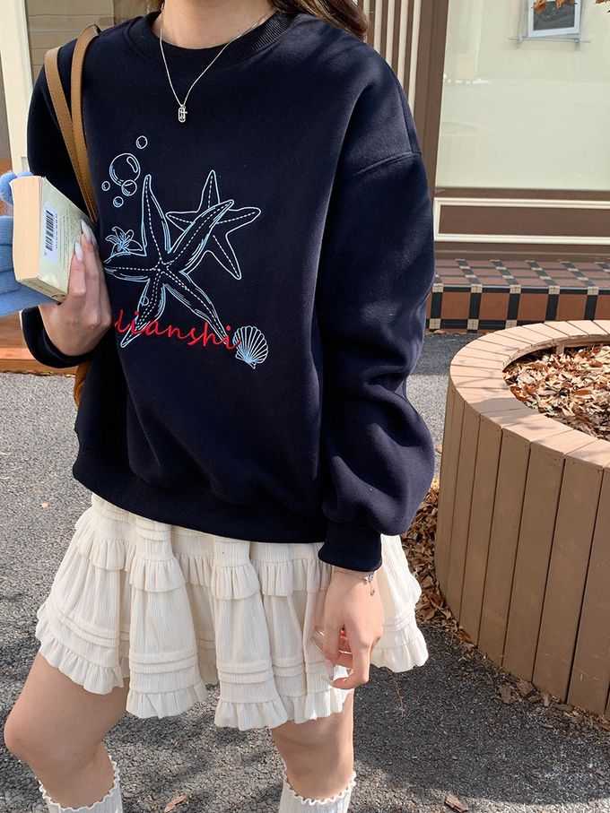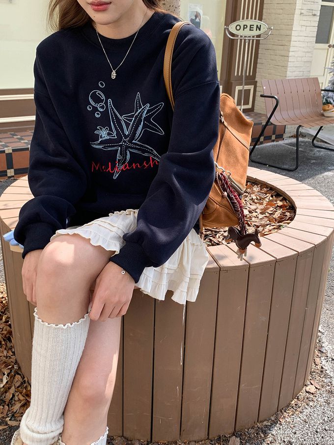 3th Morning - (加絨)長袖大學T-刺繡海星-藏青 (F)