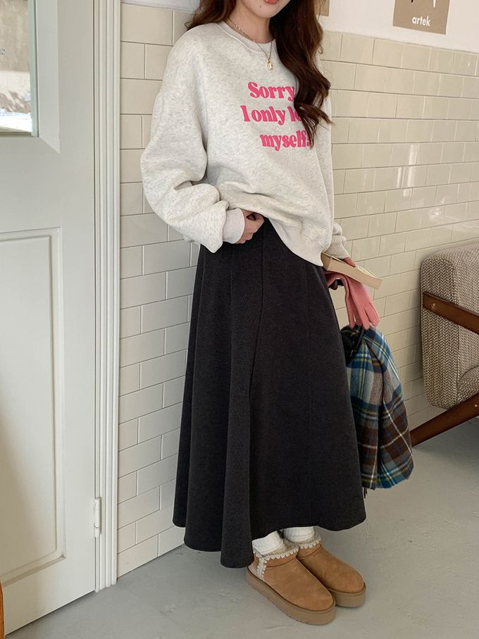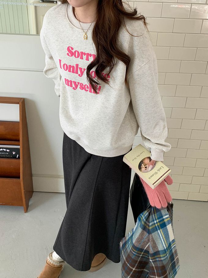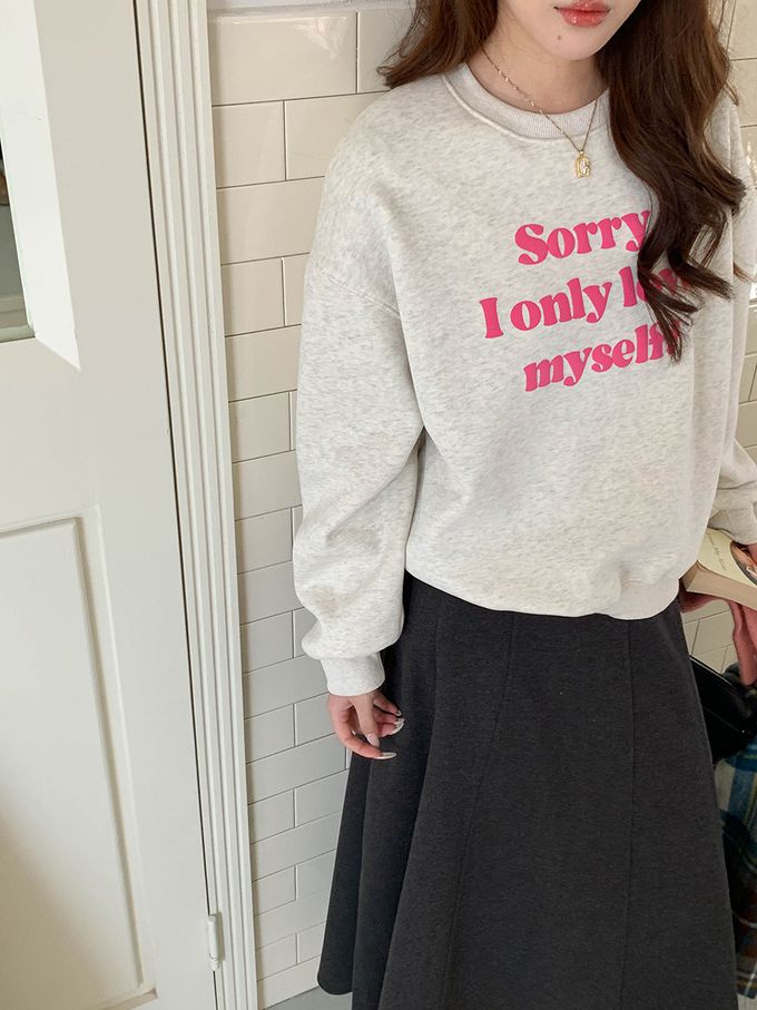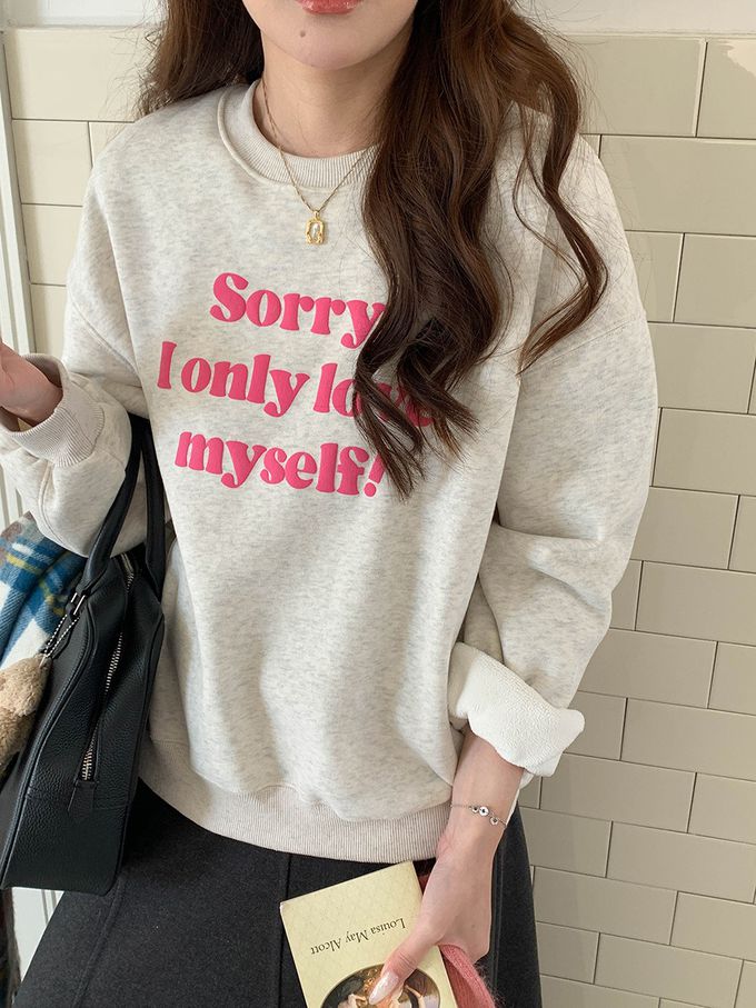 3th Morning - (加絨)長袖大學T-泡泡文字點綴-麻白 (F)