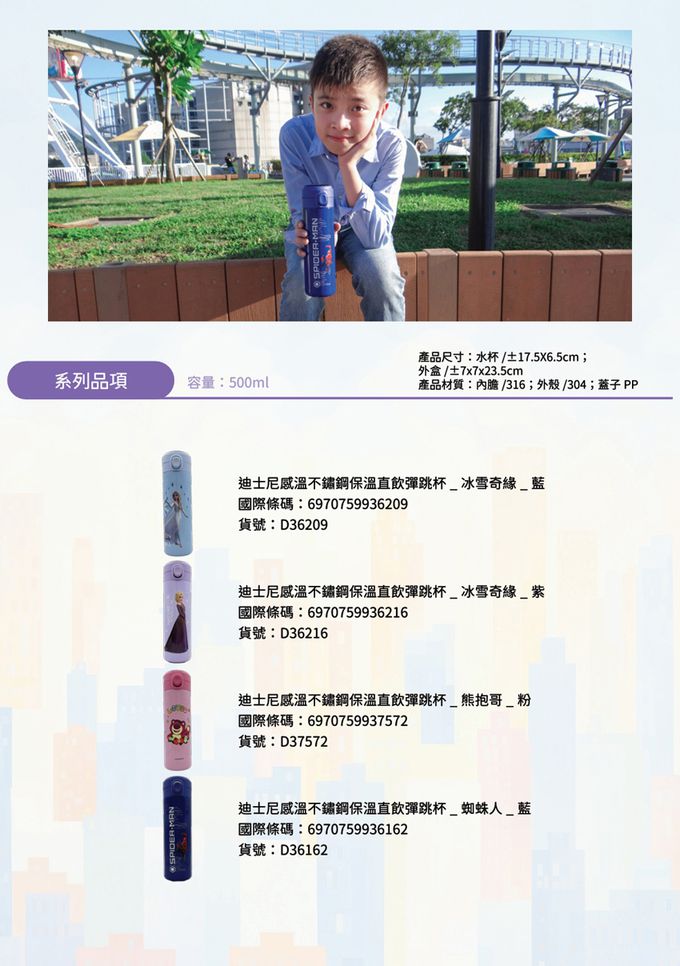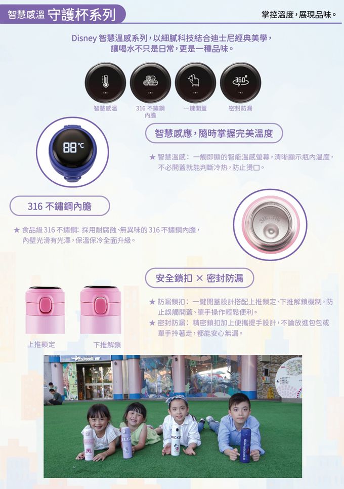 • 品名:正版授權感溫不鏽鋼保溫 直飲彈跳隨身杯 /守護杯系列
