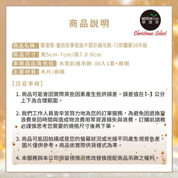 品名:童話故事聖誕木質彩繪吊飾-12款圖案36件組-交換禮物耶誕派對佈置