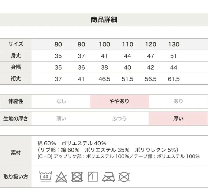 • 成分:棉 60%、聚酯纖維 40%