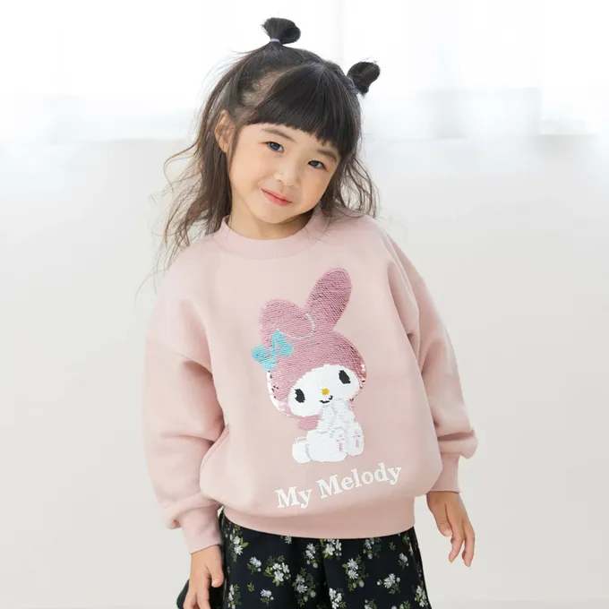 日本 Chil2 - 立體聯名角色裏起毛長袖上衣-亮片卡通人物美樂蒂-粉紅