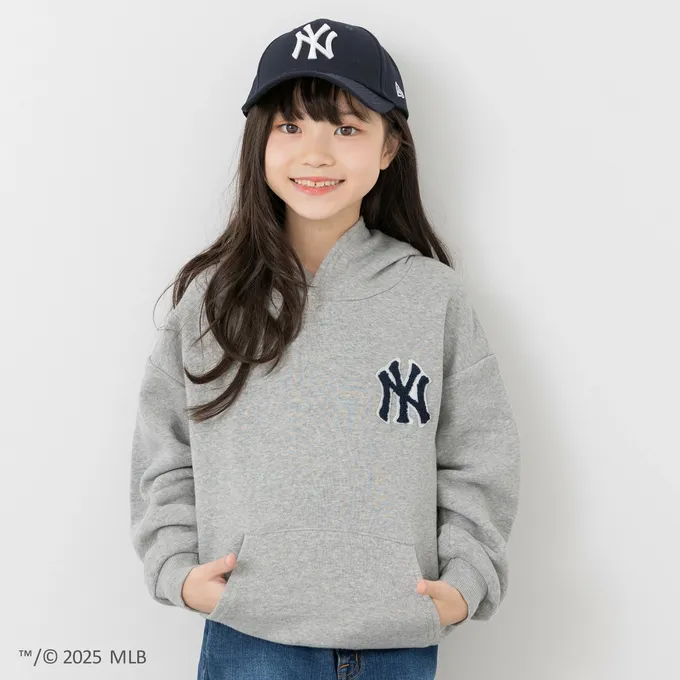 日本 Chil2 - MLB聯名 裏毛連帽長袖上衣-紐約洋基-灰