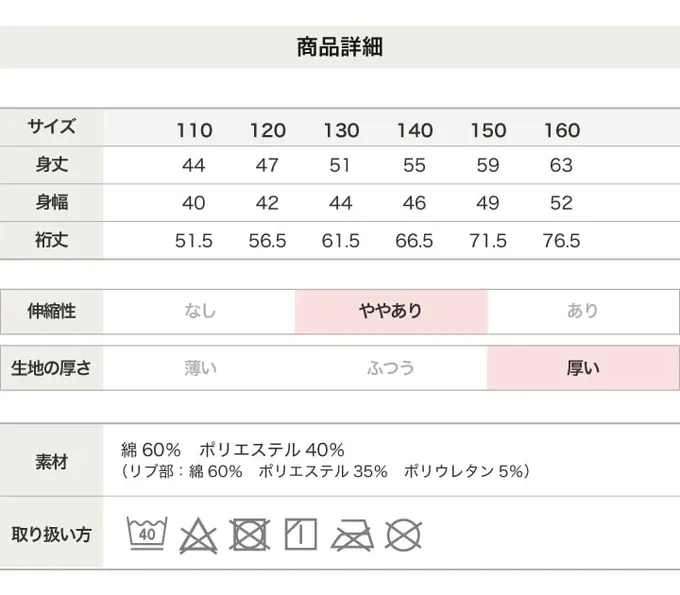 • 成分:棉 60%、聚酯纖維 40%