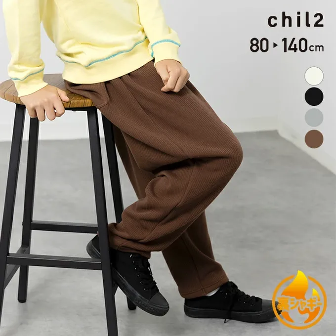 日本 Chil2 - 內刷毛羅紋百搭寬鬆長褲-灰