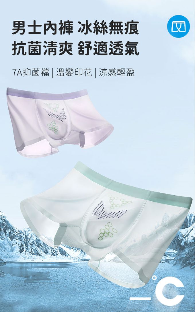 品名:男士內褲 冰絲無痕 抗菌清爽 舒適透氣-3件