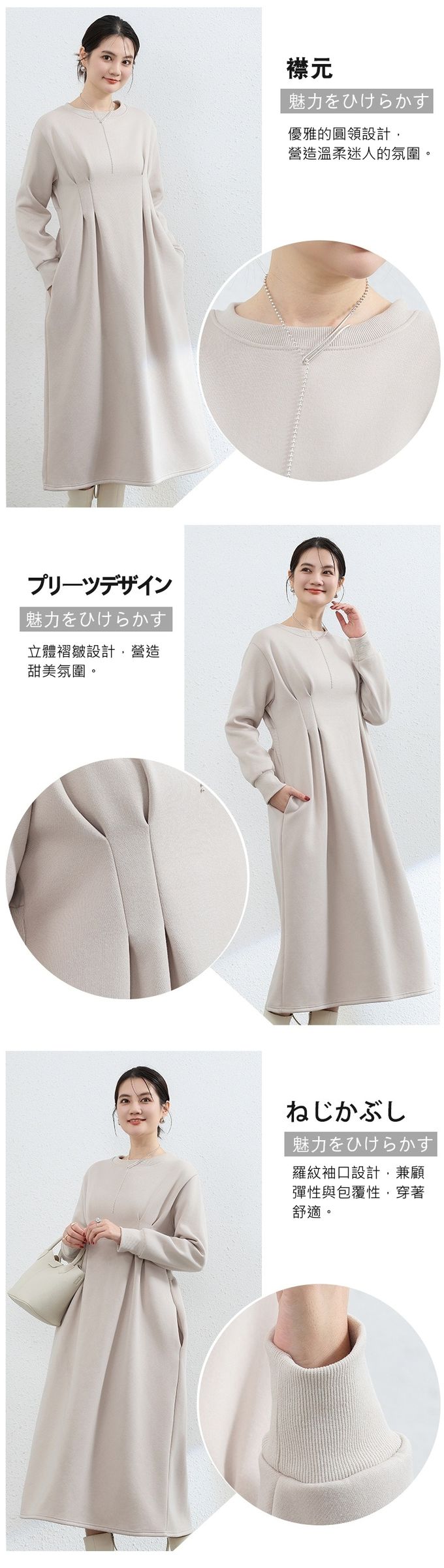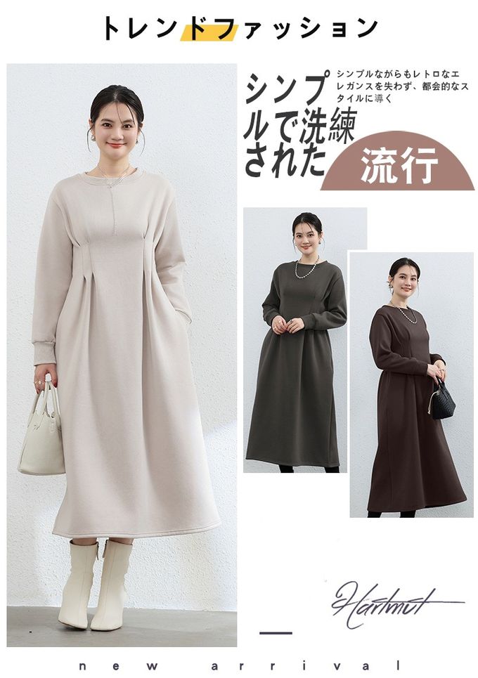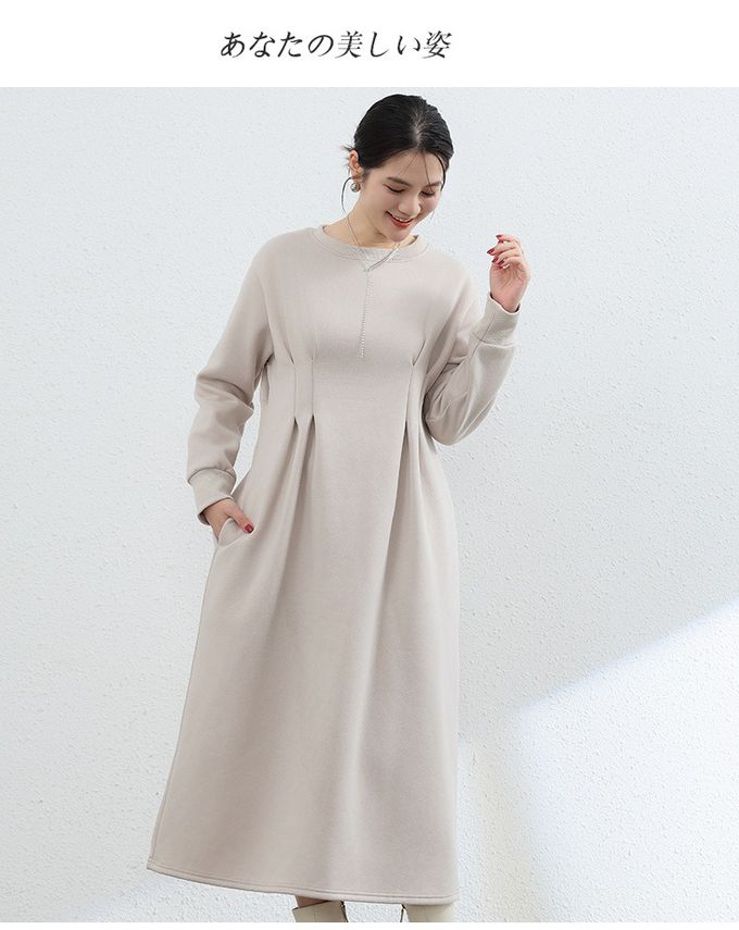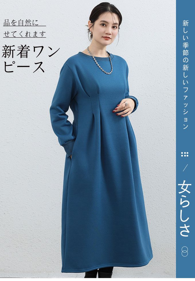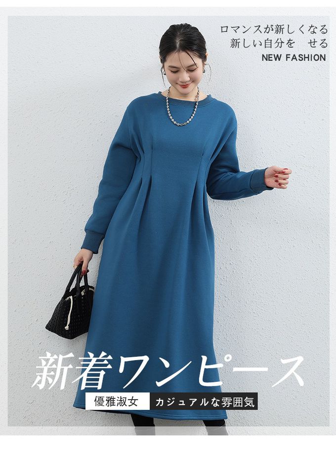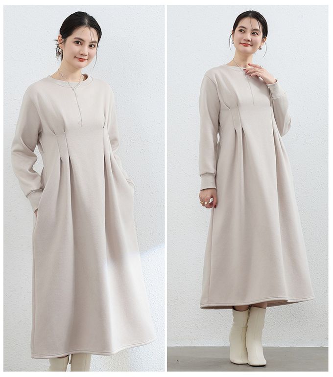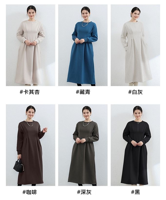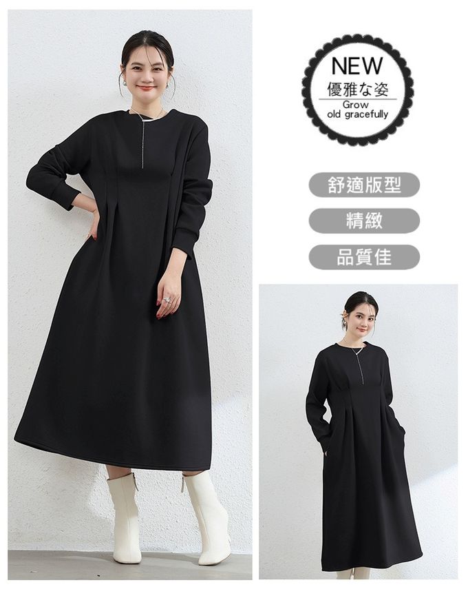 • 品名:(內裡加絨)休閒感抓褶修身剪裁長袖洋裝